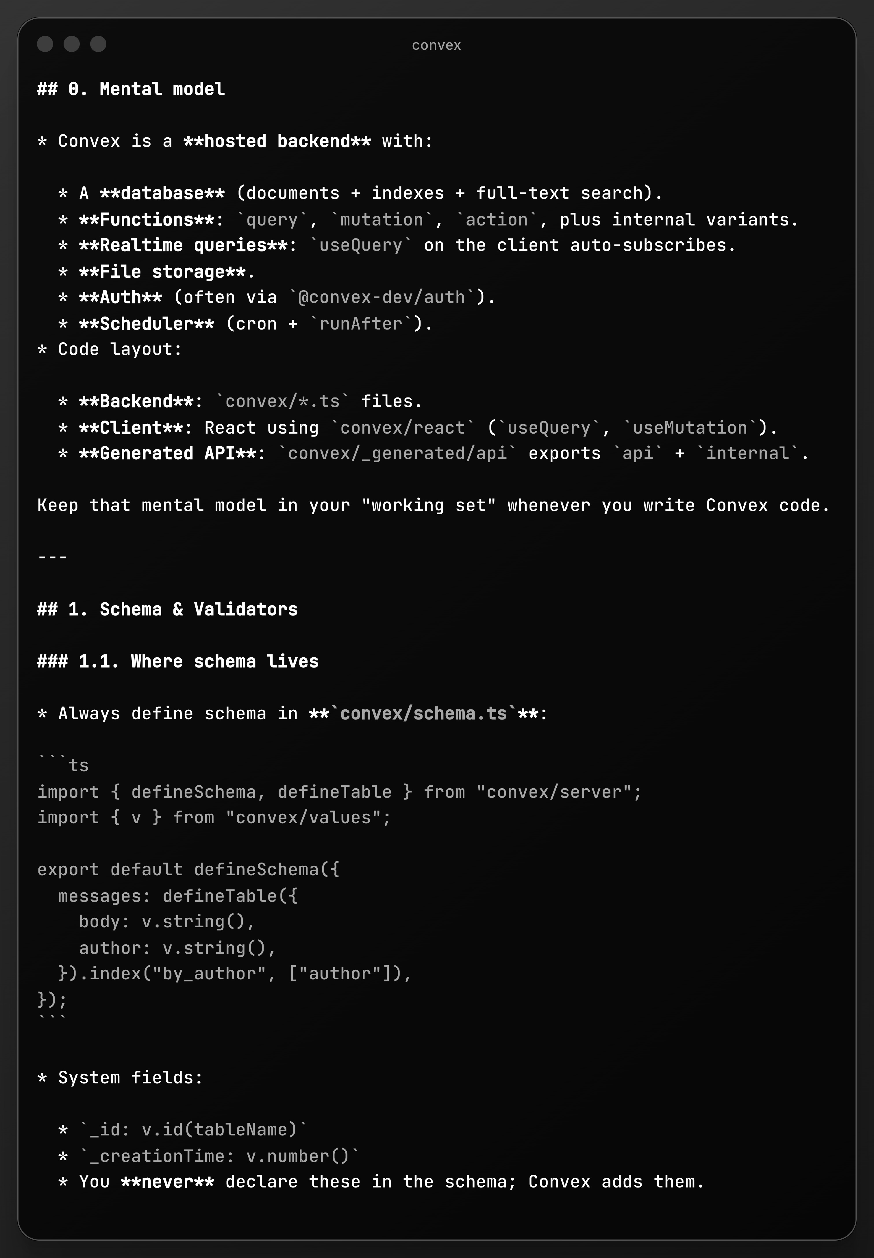 Custom Skills — I wrote my own skill for Convex-specific patterns. I extracted the common practices from Convex’s Chef project, turned them into a document, and used Claude Code to generate the skill. The key is progressive discovery: you do not dump everything into CLAUDE.md upfront. You let the agent discover context as it needs it.